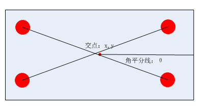 糾偏方法:如上圖所示,以雙相機錯開對位為例,糾偏方法同四Mark映射對位。以兩個Mark連線的角度作為θ,兩Mark的中間點坐標作為(x,y);同樣道理,三相機錯開對位糾偏方法同六Mark映射對位;四相機錯開對位映射方法同8相機映射對位。