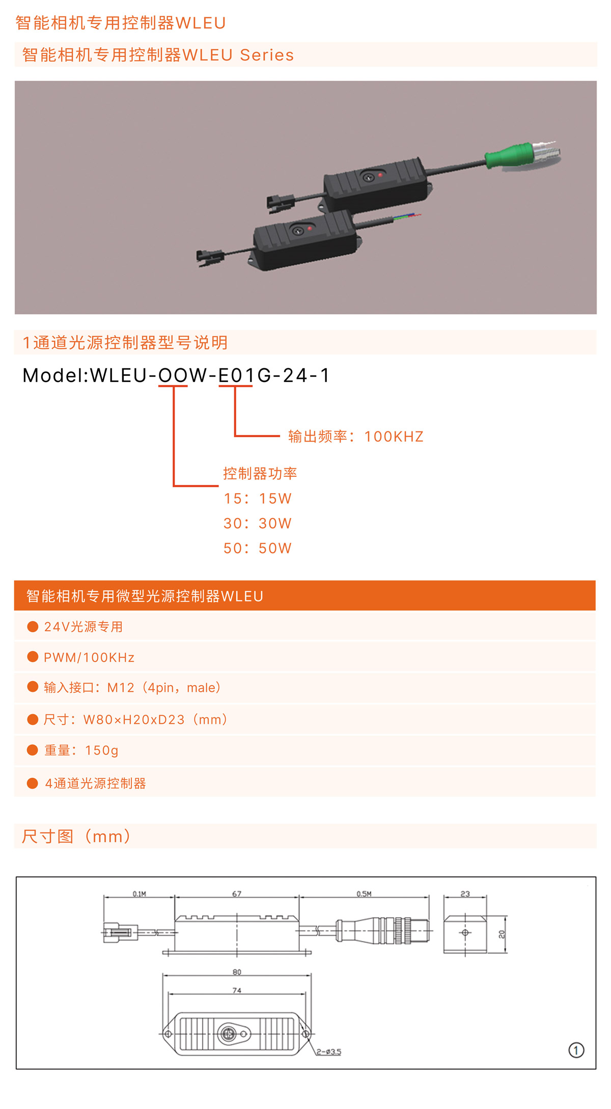 智能相機(jī)專用微型光源控制器:24V光源專用,PWM/100KHz,輸入接口:M12,4通道光源控制器。