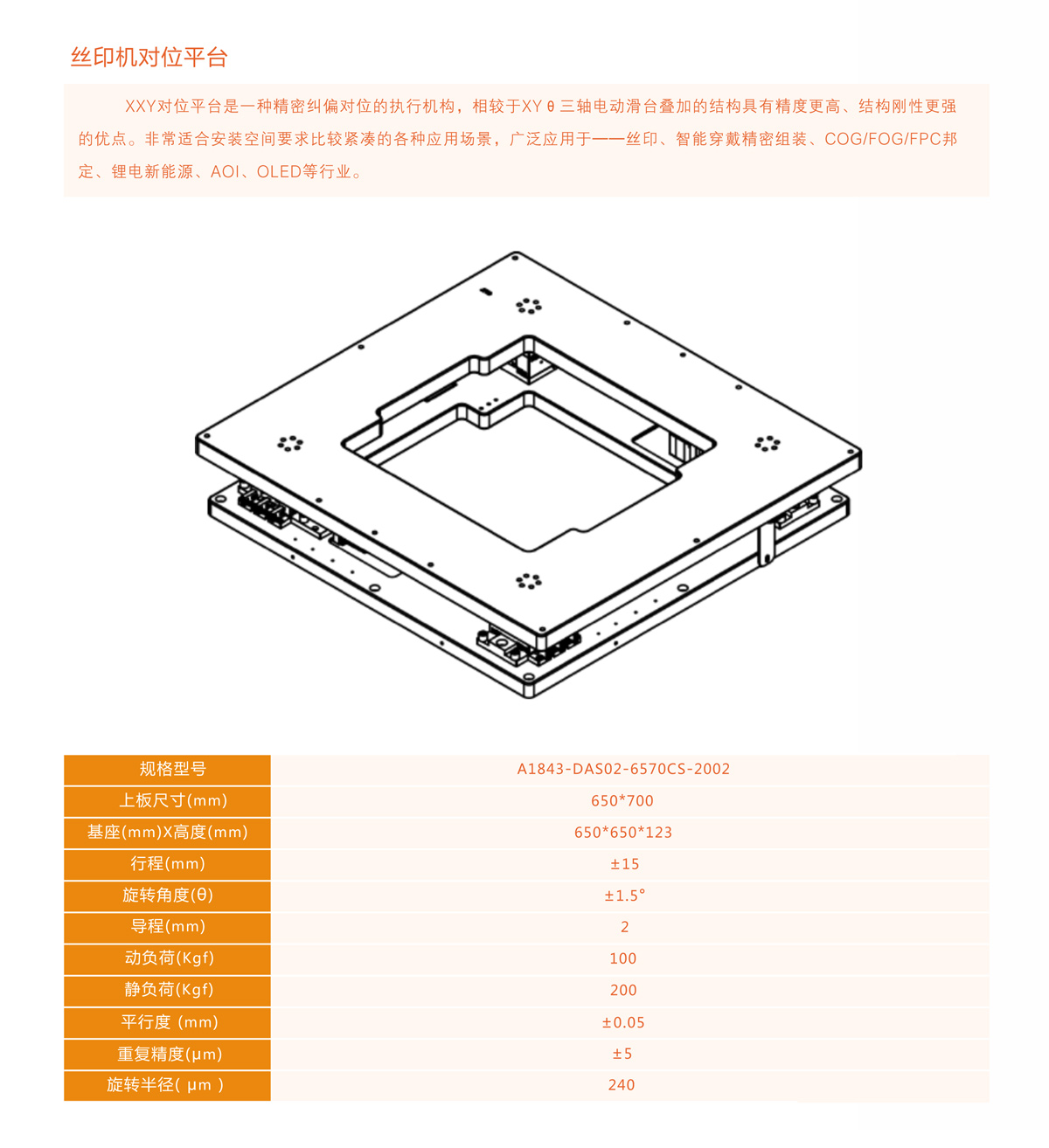 XXY對位平臺是一種精密糾偏對位的執(zhí)行機構(gòu),相較于XYθ三軸電動滑臺疊加的結(jié)構(gòu)具有精度更高、結(jié)構(gòu)剛性更強的優(yōu)點。非常適合安裝空間要求比較緊湊的各種應(yīng)用場景,廣泛應(yīng)用于——絲印、智能穿戴精密組裝、COG/FOG/FPC邦定、鋰電新能源、AOI、OLED等行業(yè)。