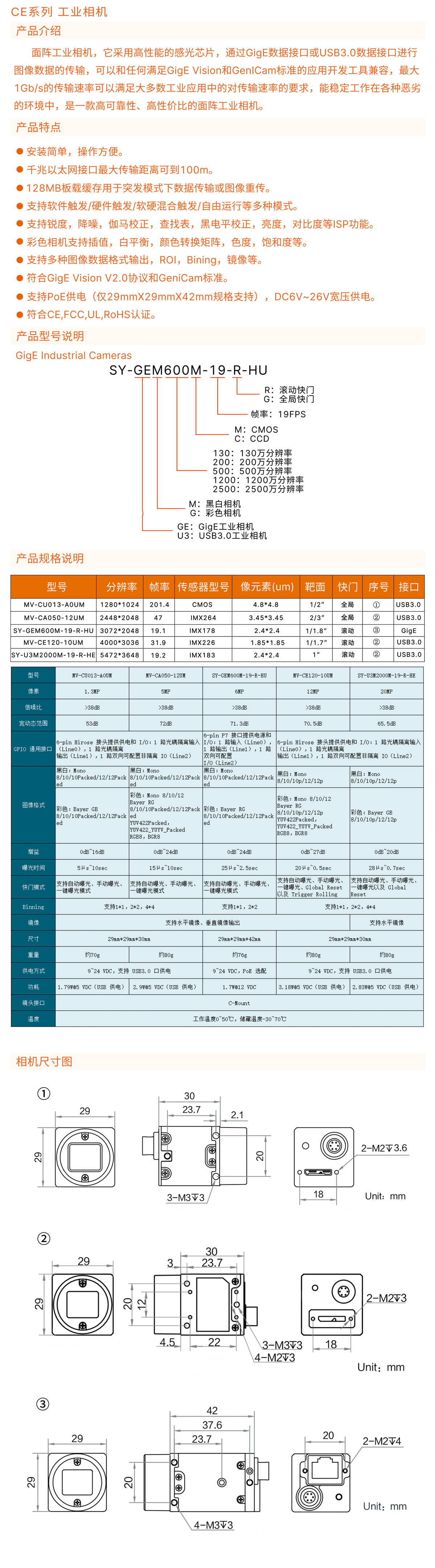 CE系列 工業(yè)相機資料說明 時間:2022-10-25 15:30:42