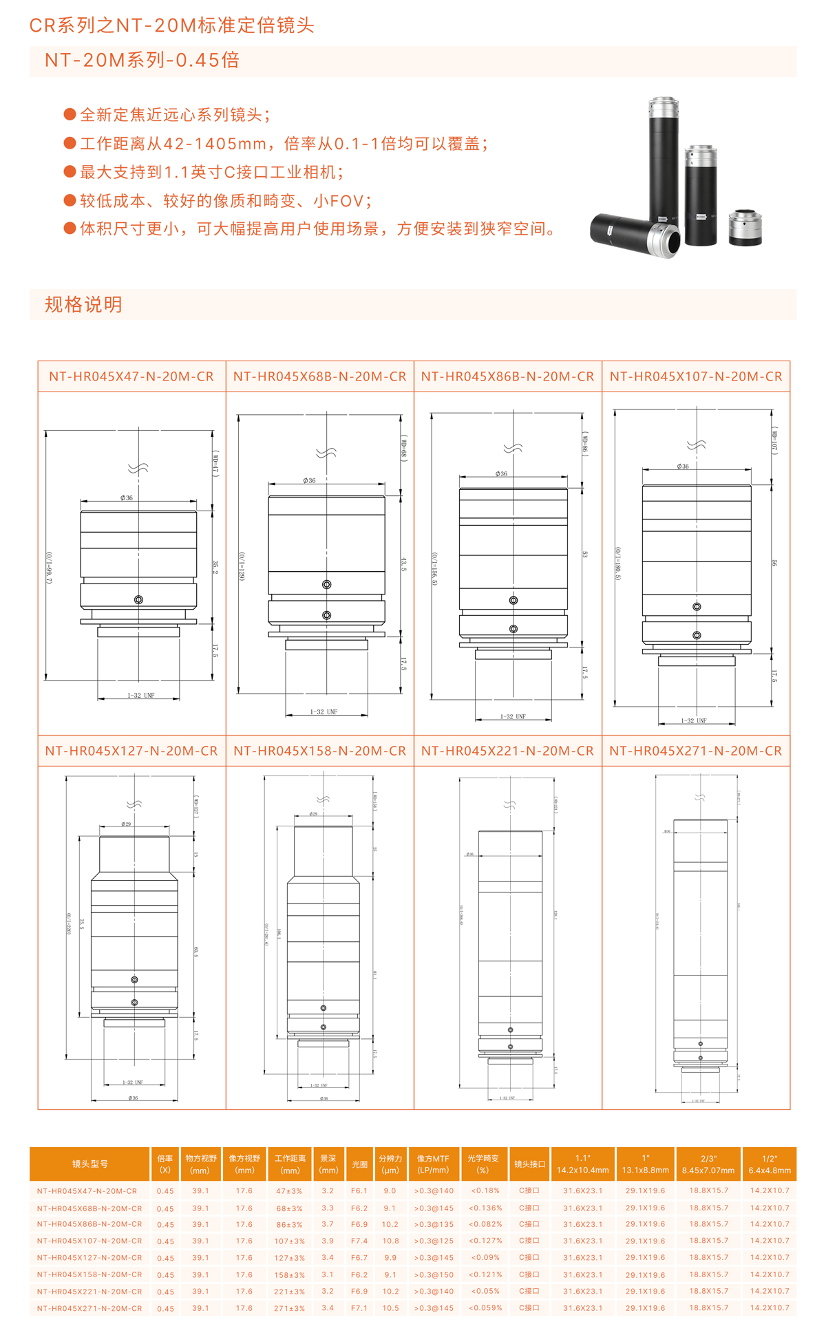 全新定焦近遠心系列鏡頭;