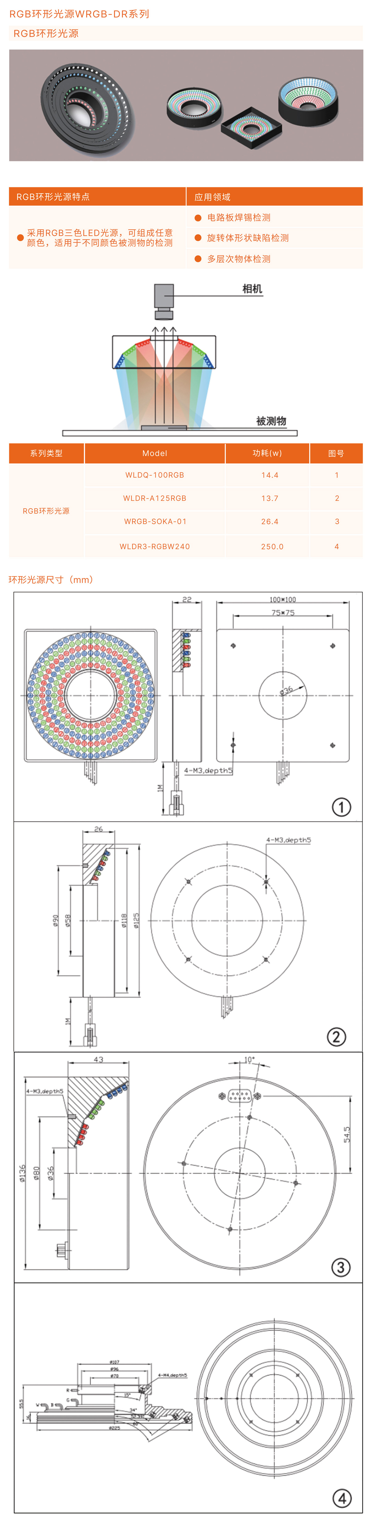采用RGB三色LED光源,可組成任意顏色,適用于不同顏色被測物的檢測