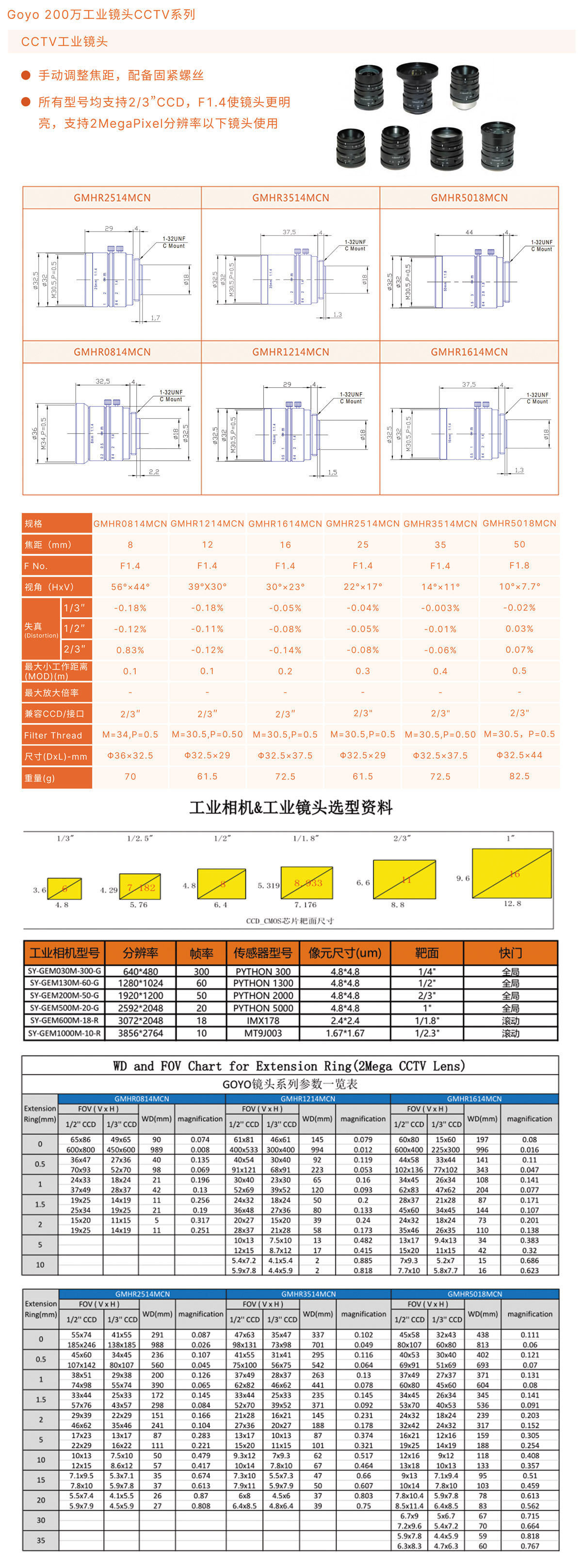 Goyo 200萬工業(yè)鏡頭CCTV系列