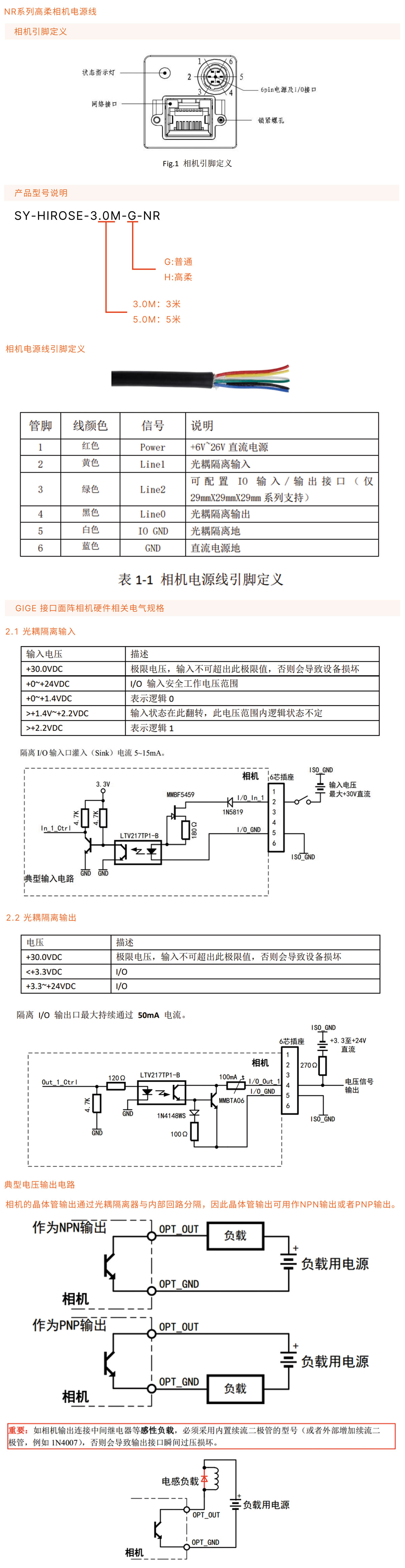 高柔工業(yè)相機(jī)電源線,相機(jī)的晶體管輸出通過(guò)光耦隔離器與內(nèi)部回路分隔,因此晶體管輸出可用作NPN輸出或者PNP輸出。